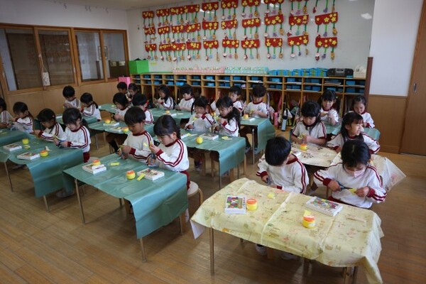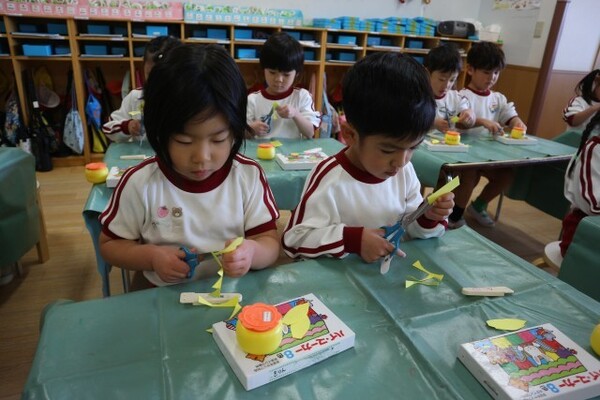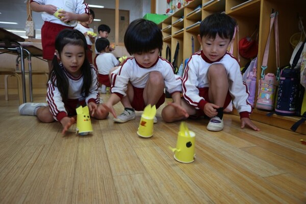 | 本園の4歳児ばら組の様子をお伝えさせていただきます。 今日は、みんなの大好きな作って遊ぼうで、トコトコピカチュウを作りました。紙コップをピカチュウに見立てたのですが、それぞれかわいい目を描いて、オリジナルのピカチュウを完成させていました。 紙コップの中に、ビー玉の入ったペットボトルをキャップをまわして手を離すと、不思議な動きで前に進むのですが、不思議な動きに笑っていた子どもたち。キャップをまわすのにコツがいるのですが、上手にまわし、お友だちと競争しながら楽しんでいました。 |