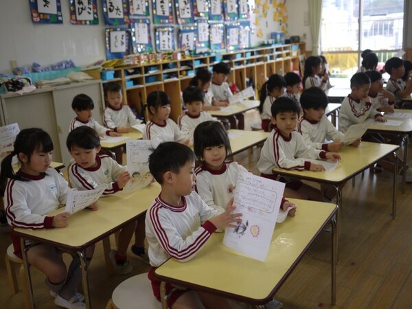 | 本園の5歳児ゆり組の様子をお伝えさせていただきます。 ゆり組の子どもたちは来週、住道南小学校へ交流会に行きますが、今日、1年生から交流会の招待状が届きました。 「1年生から招待状が届いたよ!」と子どもたちに伝えると、びっくりした様子の子どもたちでしたが、一人ずつに招待状を手渡すと大喜び! とても嬉しそうに招待状を読んでいて、「これは、大切なものやで!」と言ってくれる子も! 来週、1年生と会えるのを楽しみにしていた子どもたちです! |