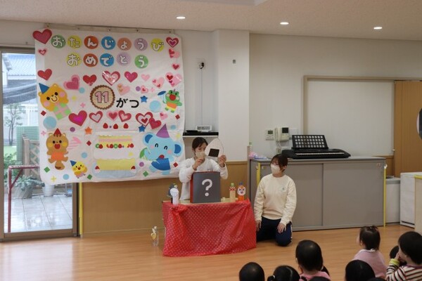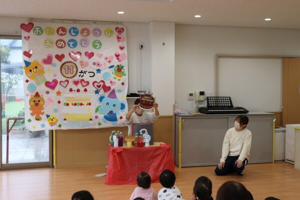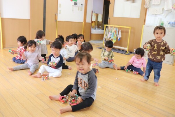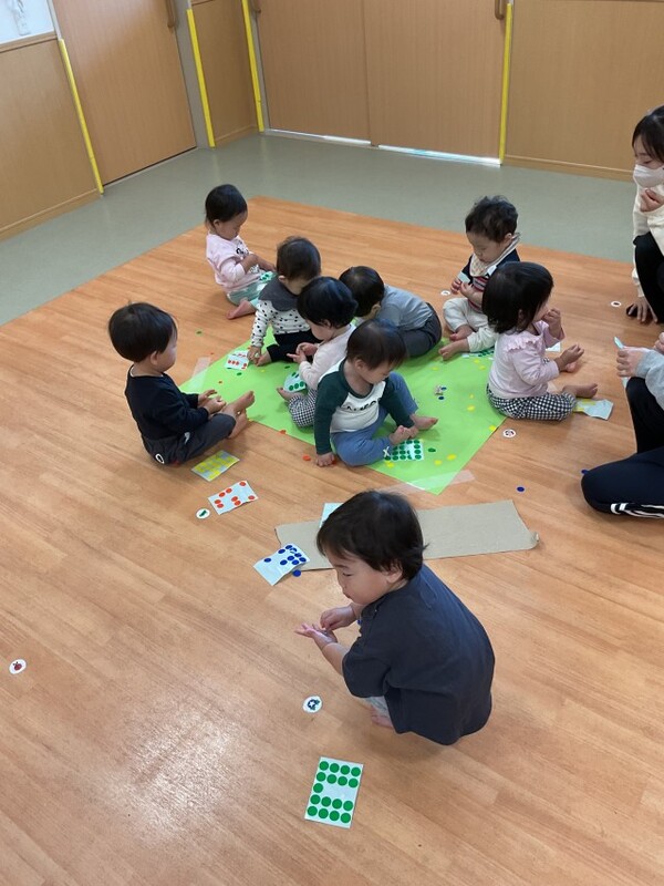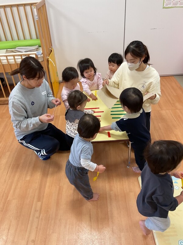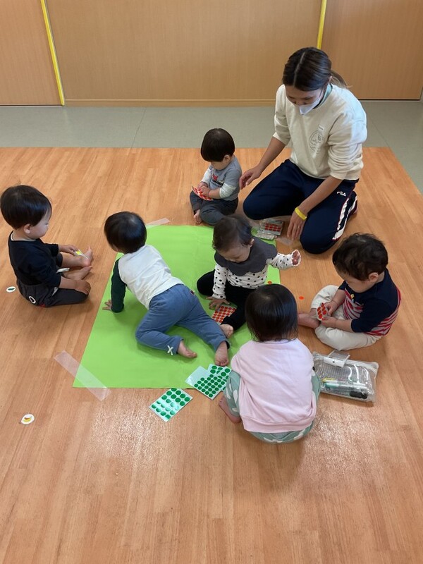 | 分園の0歳児うさぎ組の様子をお伝えさせていただきます。 子どもたちの大好きなシールを貼ったり、剝がしたりして遊びました。指先も上手に使えるようになっていて、とても楽しんでいました。ずっと集中している子と、シールを貼る方、剥がす方と移動して楽しむ子と思いおもい過ごしました。 その後は、新聞紙を細かく破って紙吹雪をして、みんなで笑顔いっぱい楽しみました。シールと新聞紙遊びの様子は、公式インスタグラムのストーリーズで公開しております。→公式インスタグラム |