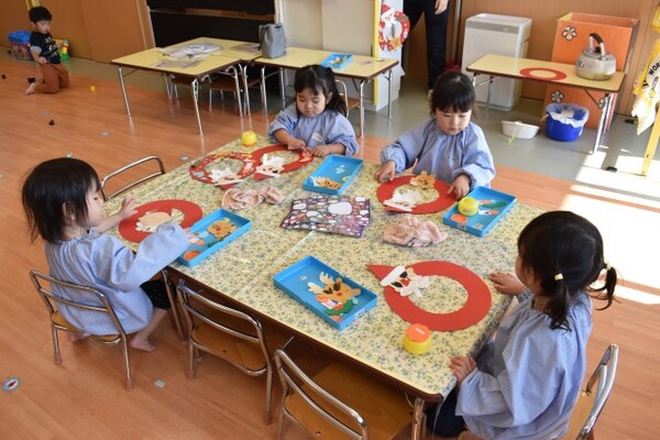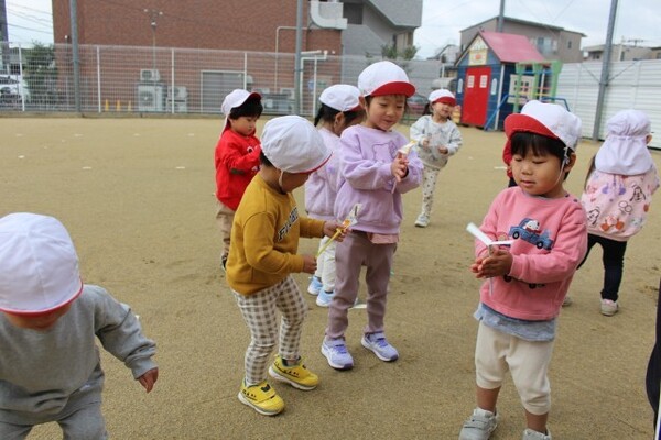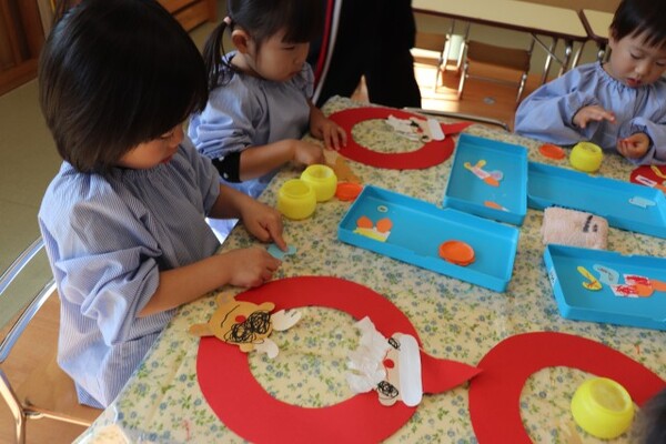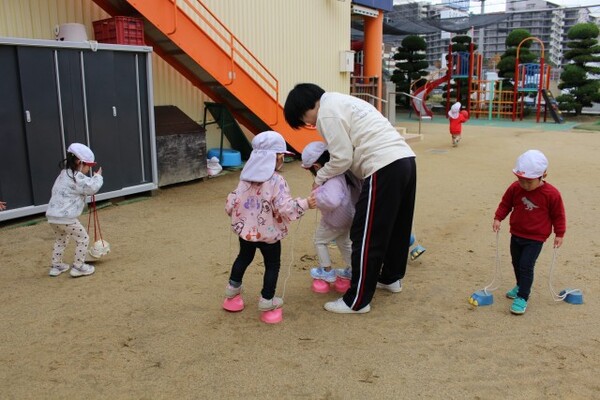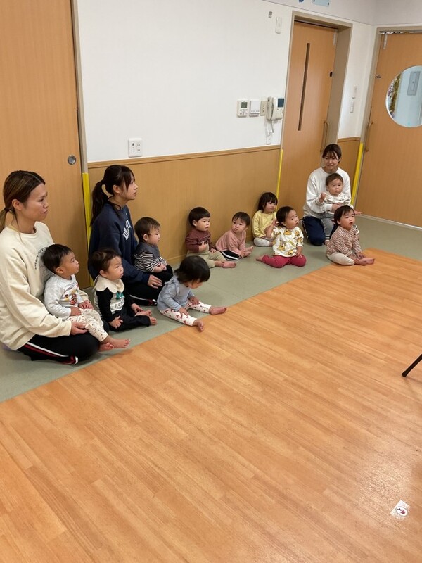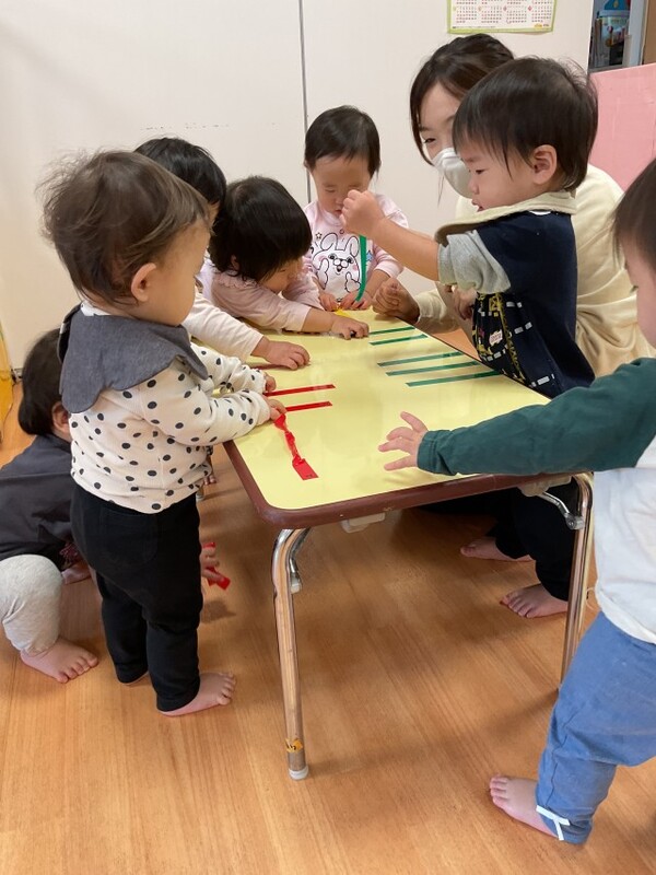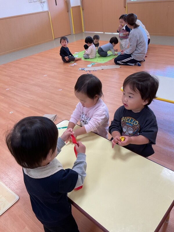11月27日 分園 シールと新聞紙遊び(0歳児うさぎ組)