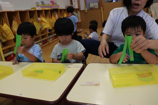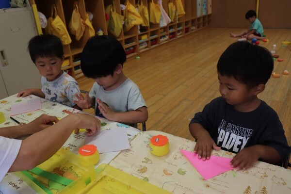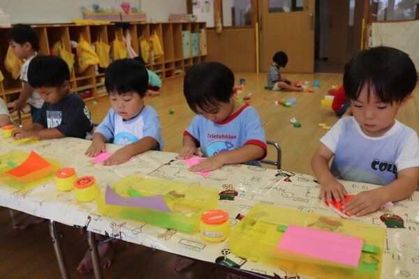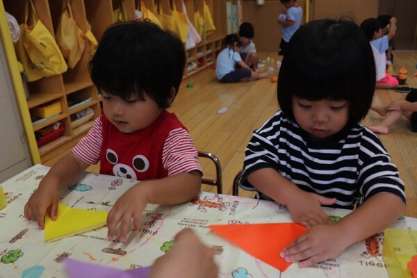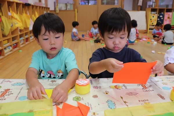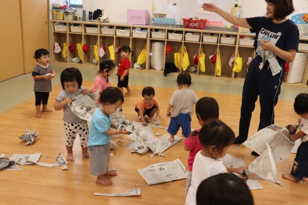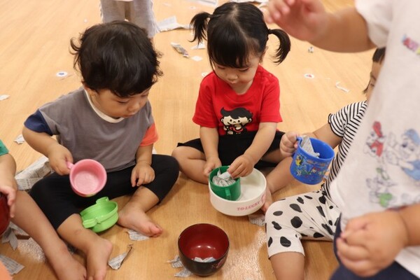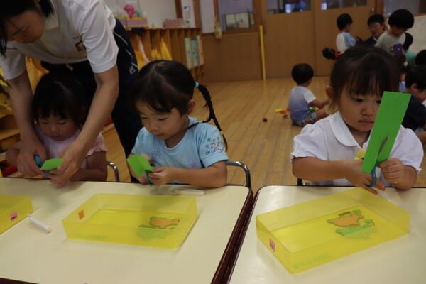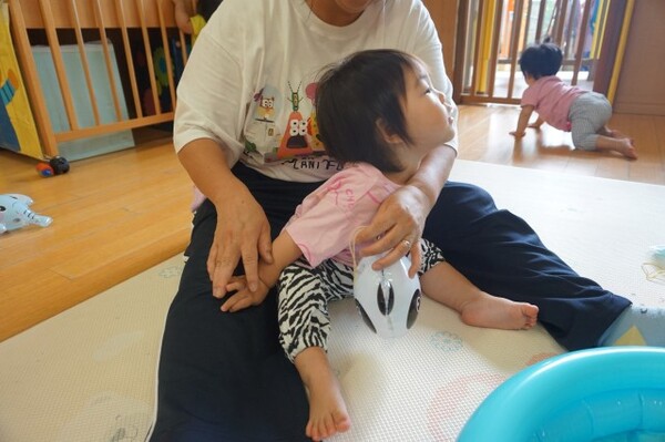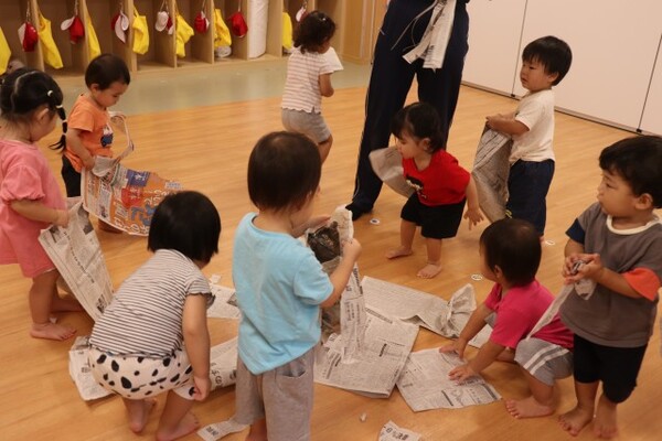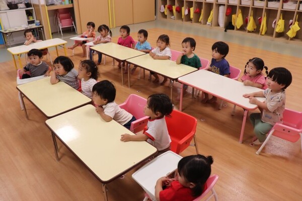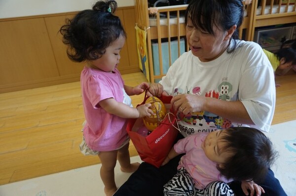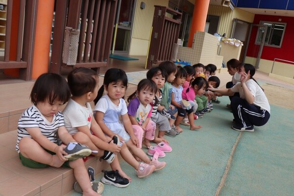 | 本園の1歳児さくら組の様子をお伝えさせていただきます。 少しずつ涼しくなり、本格的に運動会の練習も始まりました。 戸外での活動が多くなると、子どもたちも自分で靴を履くことが多くなり・・・最近、靴を履こうと必死に頑張っています! 足を持ち上げたり、力を込めて靴を引っ張ってみたりと、自分たちで工夫しながら取り組んでいます。 時々、左右が反対で履いてしまったりやお友だちの靴を履こうとしたり・・・子どもたちの一生懸命な姿に成長を嬉しく感じる担任です!  |
