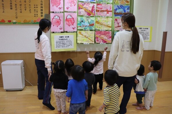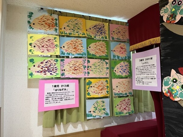 | 本園の作品展の様子をお伝えさせていただきます。 今日から21日まで2階プレイルームにて、作品展を開催しております。 子どもたちの力作をご覧いただきたいと思います。 |