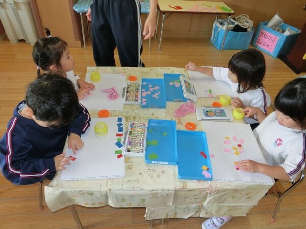 | 本園の3歳児ひまわり組の様子をお伝えさせていただきます。 今日は、製作活動でハサミの1回切りを一斉指導で行いました。 好きな色の細長い画用紙を選び、ハサミでカット!みんな集中しながら、慎重に画用紙を切っていました。 次に切った紙を自由画帳に糊ではり、好きな絵を描きました。「ドラえもん」や「ヘリコプター」「消防車」などたくさんの画伯が力作を描いてくれました。 驚く作品ばかりで、担任もビックリ!子どもたちの描く力に成長を感じました。 |