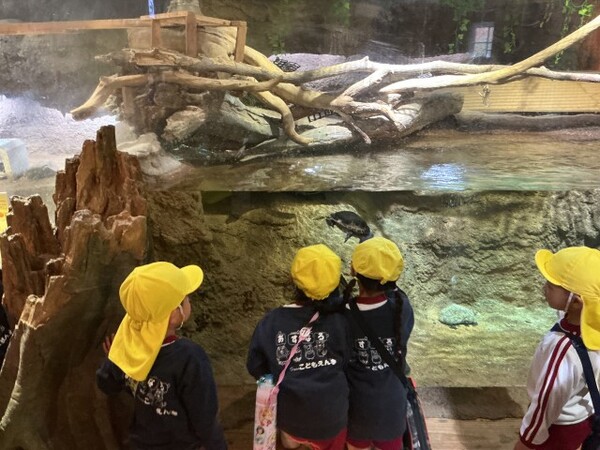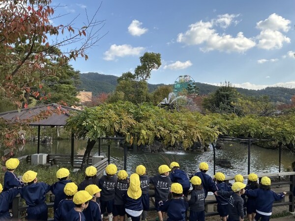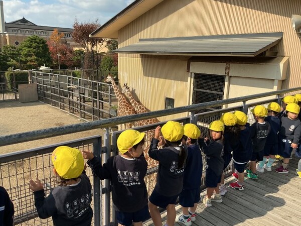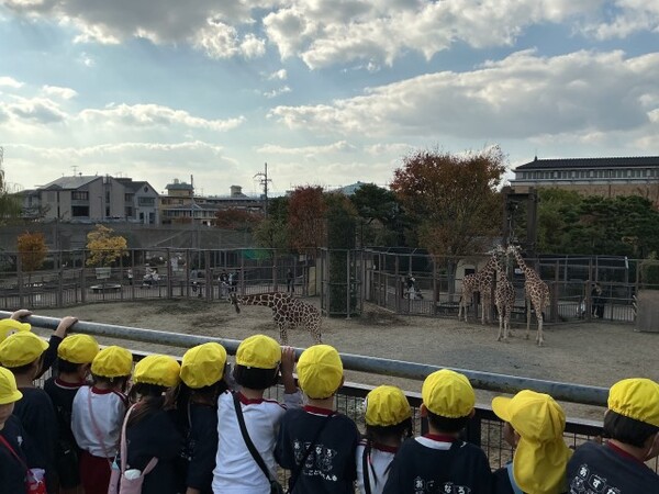 | 本園の秋の遠足の様子をお伝えさせていただきます。 今日は、子どもたちが楽しみにしていた秋の遠足で、京都市動物園に行きました。キリンやゾウ、カバなどの大きい動物を見て、「うわぁぁ!」「でっかい!」と目をキラキラとさせていた子どもたちでした。ミーヤキャットやフェネック、レッサーパンダなど小さな動物をみると、「かわいい〜!」「こっちにおいで!」とメロメロ! 途中、「動物園に行こう」の歌をうたいながら、本当に楽しそうに園内をまわっていました。 たくさん歩いた後のお弁当は格別だったようで、「おいしい〜!」とすぐに完食! 帰りのバスでは、疲れてぐっすりな子どもたちでした。 楽しい遠足となりました。 遠足の様子は、公式インスタグラムのリール動画でご覧いただけます。→公式インスタグラム |